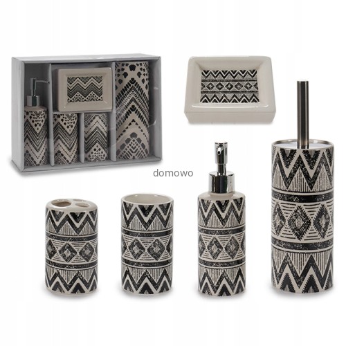 CERAMICZNY ZESTAW ŁAZIENKOWY 5cz czarny zygzaki
