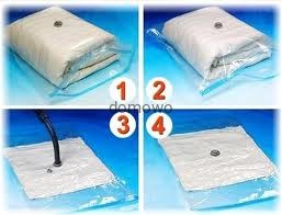 Wkładamy ubrania, kołdry ,poduszki zabawki do worka przesuwamy suwakiem a potem specjalnym otworem odsysamy powietrze odkurzaczem.