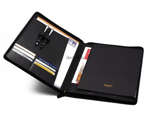 Po prawej stronie znajduje się wyłożony notatnik A4 i duża kieszeń.