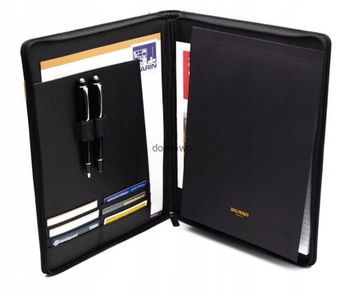 Po lewej stronie wewnątrz znajduje się duża kieszeń A4 oraz 6 mniejszych przegródek do przechowywania wizytówek, notatek, kart kredytowych itp.