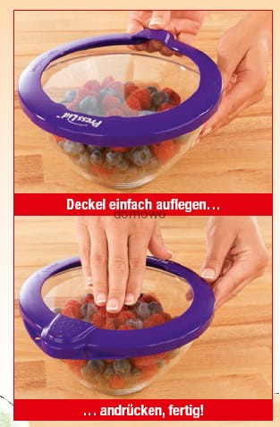 Wystarczy nałożyć ją na dowolne okrągłe naczynie , nacisnąć delikatnie na jej środek a pokrywka sama sie zassie.